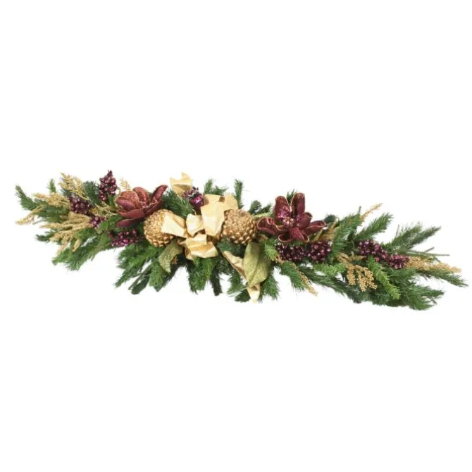 Luxury Artificial Long Table Scape with Purple. Item ships fully assembled and arrives as shown.