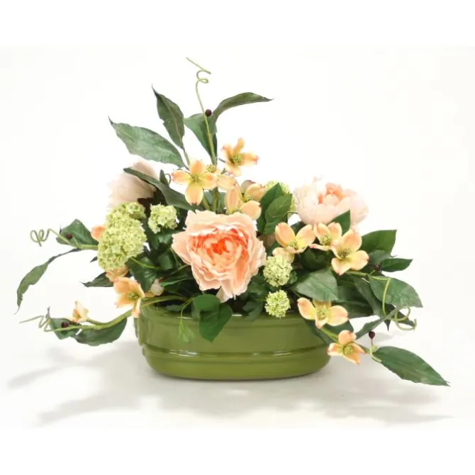 Luxury artificial Snowballs, Peonies, Dogwood, Foliage in Sage Green Lion Head Planter.