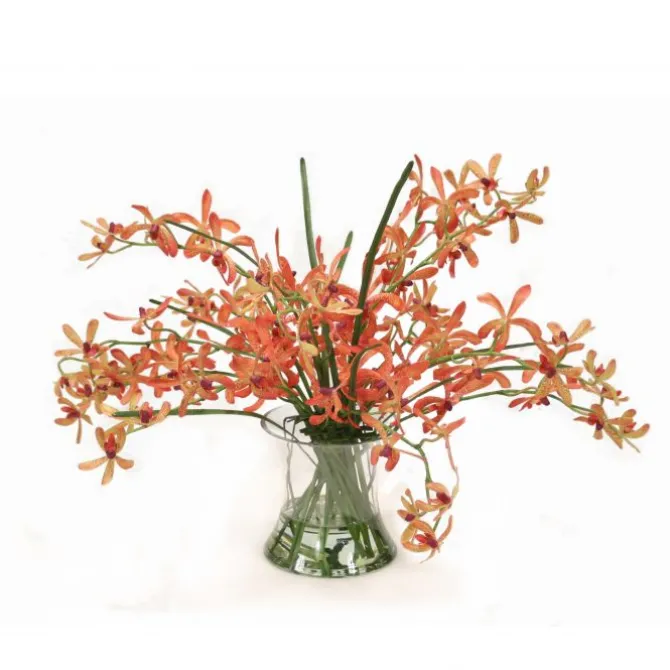 Luxury artificial Vanda Orchids in Hourglass Vase. Item ships fully assembled and arrives as shown.