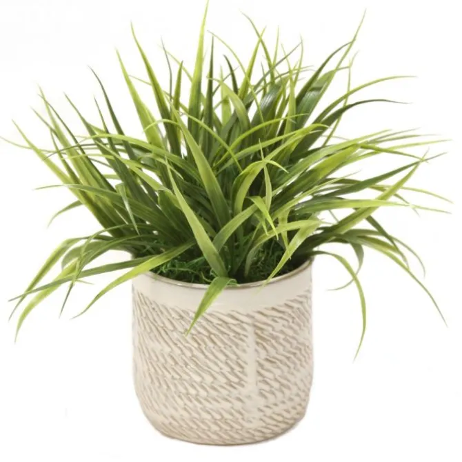 Luxury artificial Vanilla Grass in Beige Planter. Item ships fully assembled and arrives as shown.