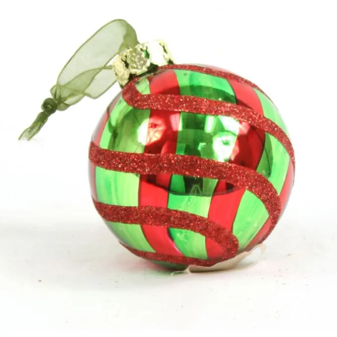 100Mm Swirled Glass Ball Ornament Red/Green (Sold in Multiples of 24)