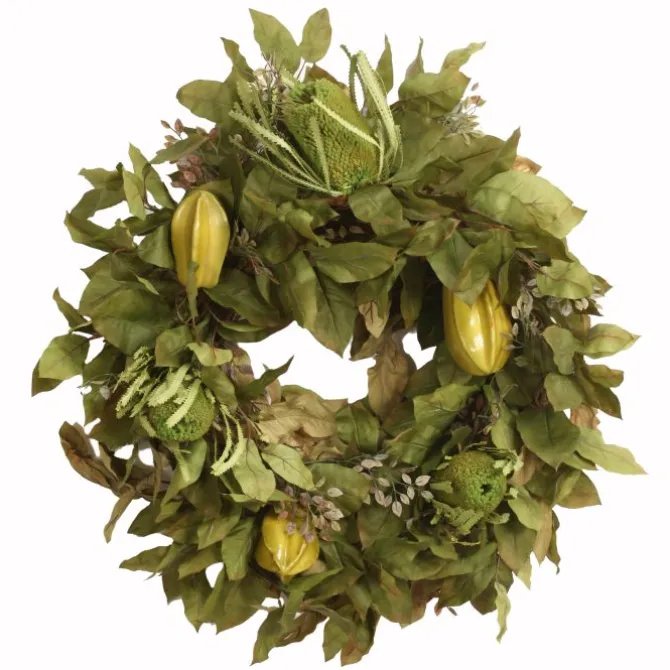 Luxury artificial Harvest Bay Leaves and Natural Banksia Wreath. Item ships fully assembled and arrives as shown.