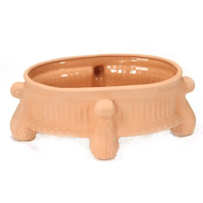 Luxury artificial Oval Footed Traditional Feather Planter White Washed Terra Cottta. Item ships fully assembled and arrives as shown.